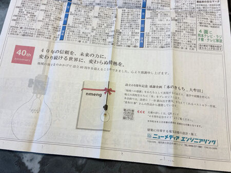 トップ NEWS & TOPICS新聞に40周年記念広告を掲載しました。 NEWS & TOPICS お知らせ お知らせ 新聞に40周年記念広告を掲載しました。 2026.03.10 有明新報に40周年記念広告を掲載しました。 感謝企画「本のきもち_大牟田」 本日よりスタートします!! どうぞ よろしくお願いいたします。 NEWS & TOPICS一覧を表示